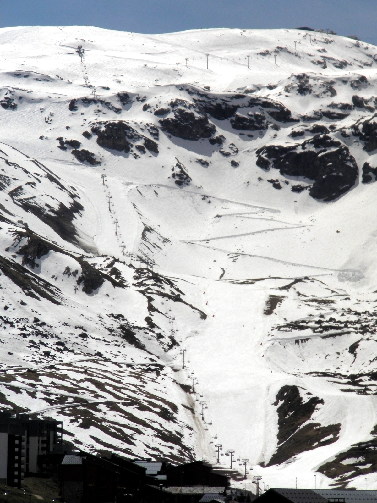 The lifts are still open at Tignes – all of them in the main station area – though hardly anyone was actually skiing. Nearly all of the commerces were closed. We spotted one restaurant open in Val Claret and one one boulangerie in Le Lac – where we had lunch overlooking the lake.