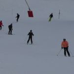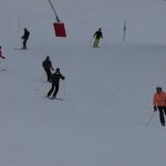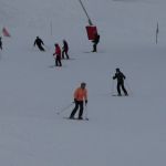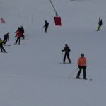 Each person was assisted through a pivot turn of the ski from the uphill edge to feel how easily the ski will turn – when the centre of mass pulls the ski fronts laterally into the new turn. You do NOT turn your feet and do not “turn” the skis!